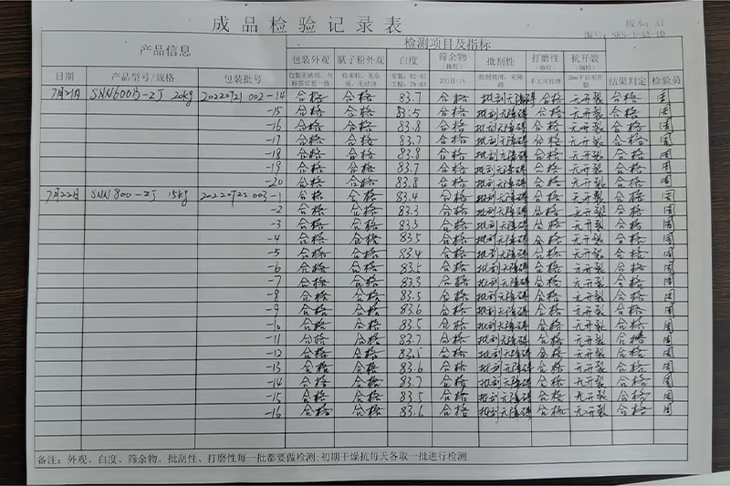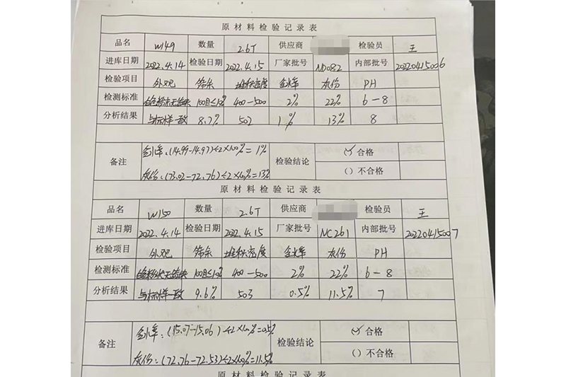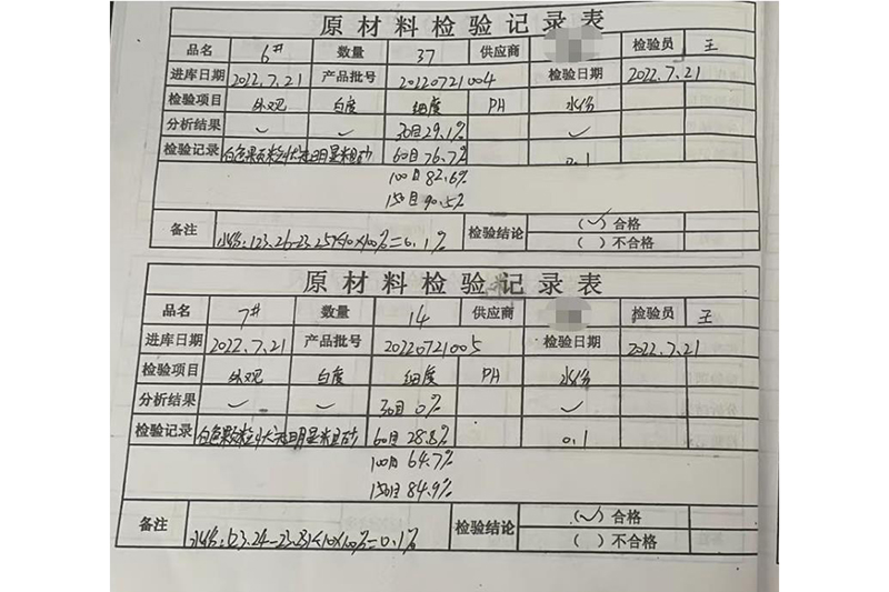 原材料檢測記錄
