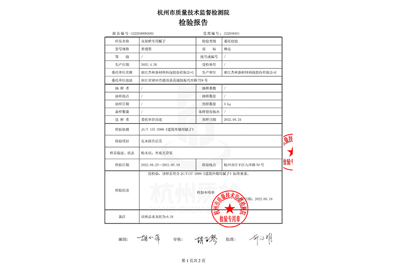高架橋專用膩子檢測報告